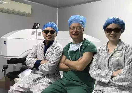 ▲柯壽濤(左)、孔潔(右)剛剛做完近視手術(shù)后與沈政偉院長(zhǎng)合影留念