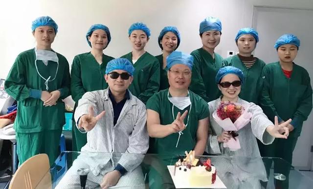術(shù)后休息了會(huì)兒,裂隙燈檢查了角膜,兩人手術(shù)都很成功。當(dāng)天是護(hù)士節(jié)前一天,恰逢醫(yī)院工會(huì)給護(hù)士們送來溫馨的節(jié)日蛋糕,兩人的心情也如美味的蛋糕,甜甜美美。